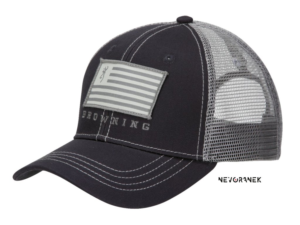 Síťovaná čepice zn. Browning. Kombinace tmavě modré barvy s barvou šedou.