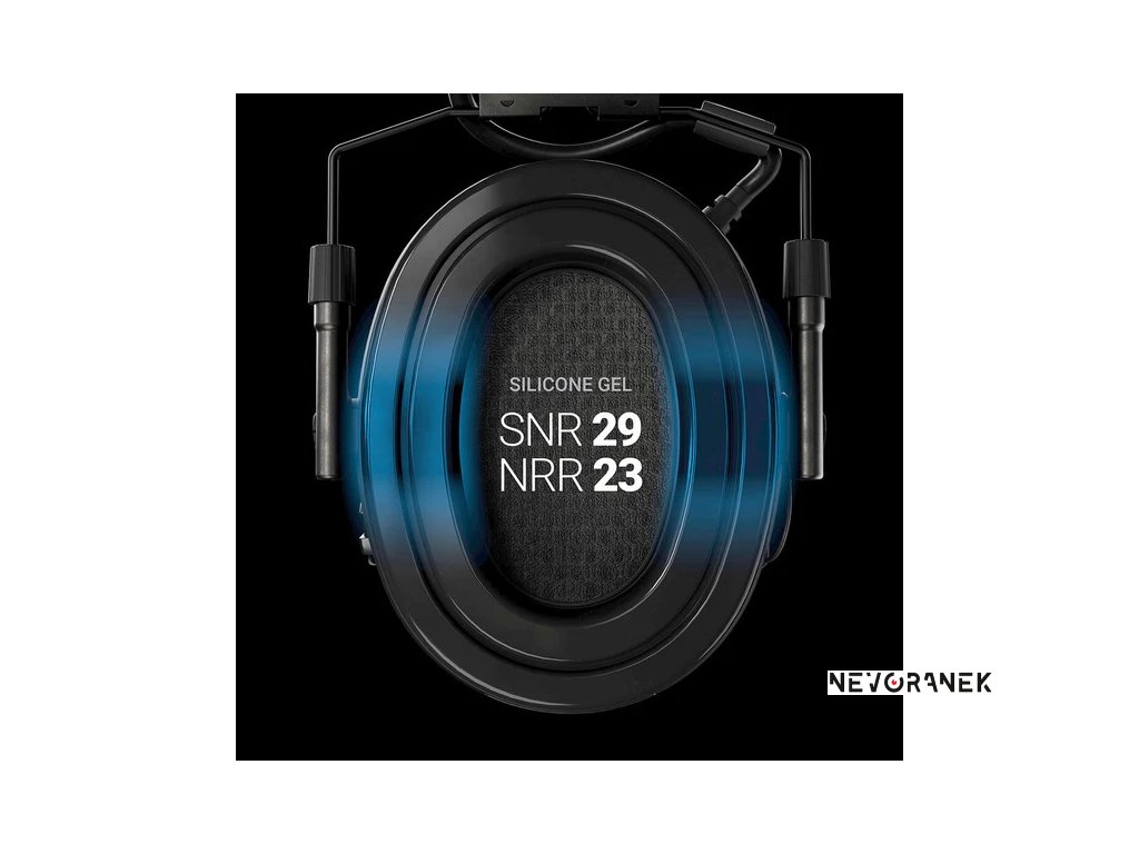 - Kompaktní mušle („slim cups“) — vhodné pro praváky i leváky, pohodlné i při nošení brýlí.