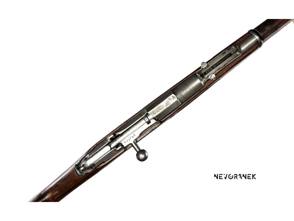 Velmi dobrý stav vzhledem ke stáří, lehce zmatovaný vývrt ale stále dostatečně ostrý. Francouzská výroba zbrojovky Chatellerault v roce 1895. Nesčíslované dno schránky. Chybí zkušebna.