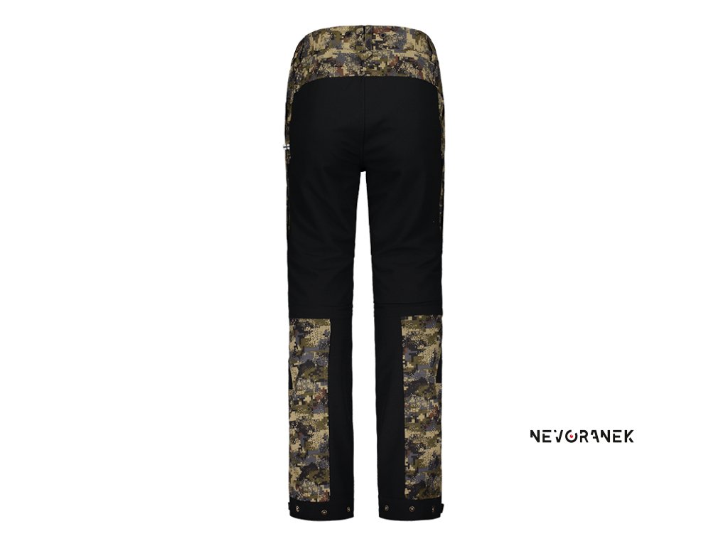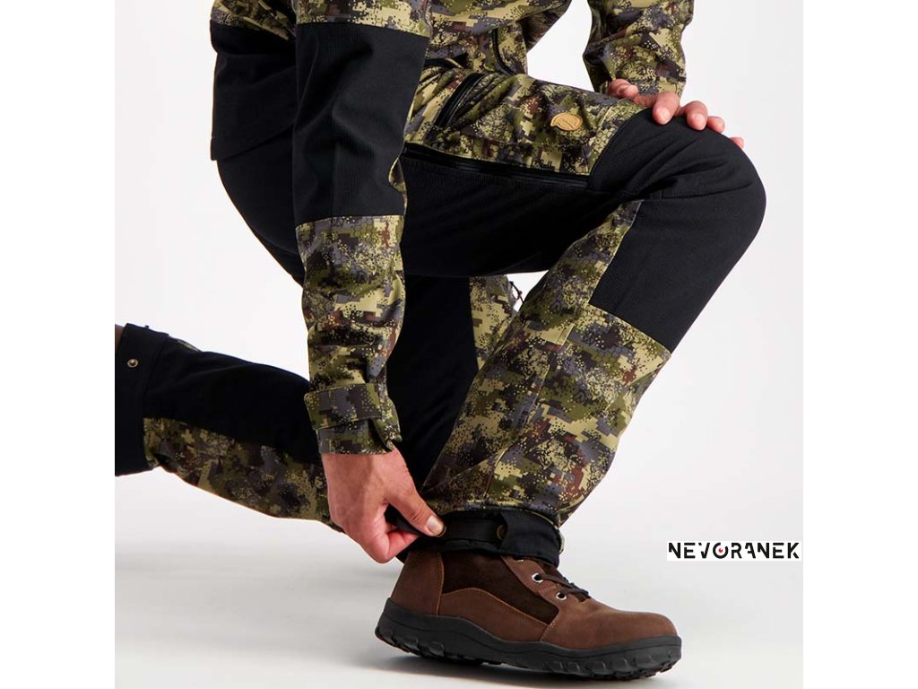 Vynikající prodyšnost a lehká konstrukce zajišťují lovci maximální pohodlí. Švy nejsou podlepeny, aby byly zcela vodotěsné, ale konstrukce udrží i silný déšť. Při aktivním pohybu lze větrací otvory v kalhotách snadno otevřít pro dodatečné větrání.
