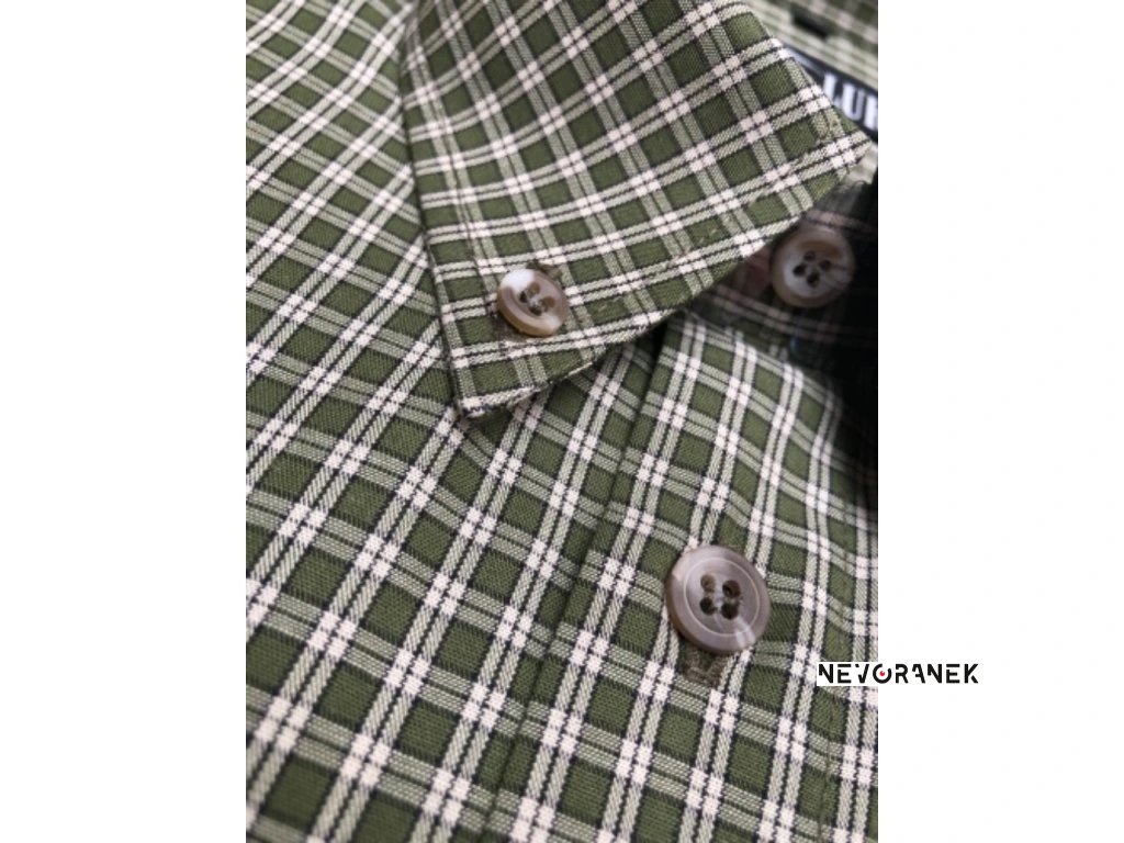 Pánská košile s krátkým rukávem ze 100% bavlny s úpravou easy-care (snadná údržba, snížená mačkavost) . Materiál je v provedení zelené sportovní káro.