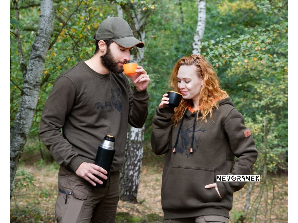 Mikina ze směsového materiálu 60% bavlna/40% polyester s trvanlivým potiskem. Barva tmavě zelená.