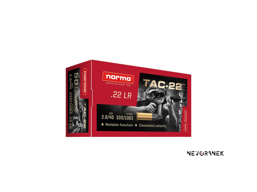Přesný malorážkový náboj Norma 22 LR Tac-22 je vhodný pro lovecké i sportovní účely, i do samonabíjecích zbraních.