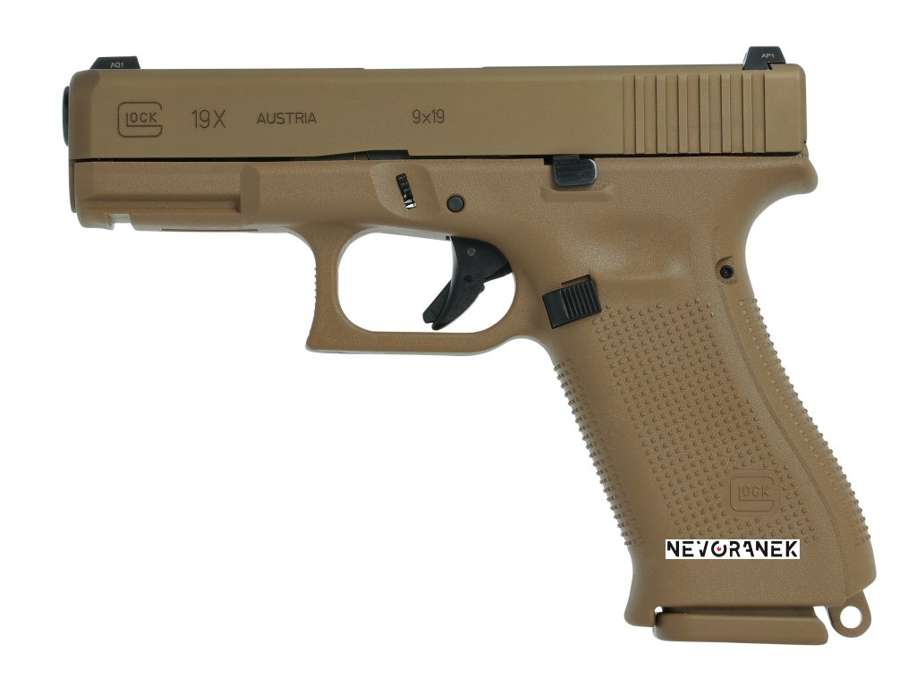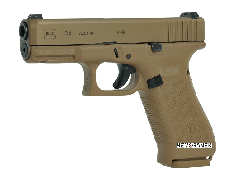 G19X vychází z pistole G19 MHS, úspěšný účastník tendru na novou služební pistoli pro U.S. Army a spolu se SIG P320 se dostal do finálního výběru. Rozdílem G19X oproti armádní verzi je pouze absence oboustranné manuální pojistky na rámu.