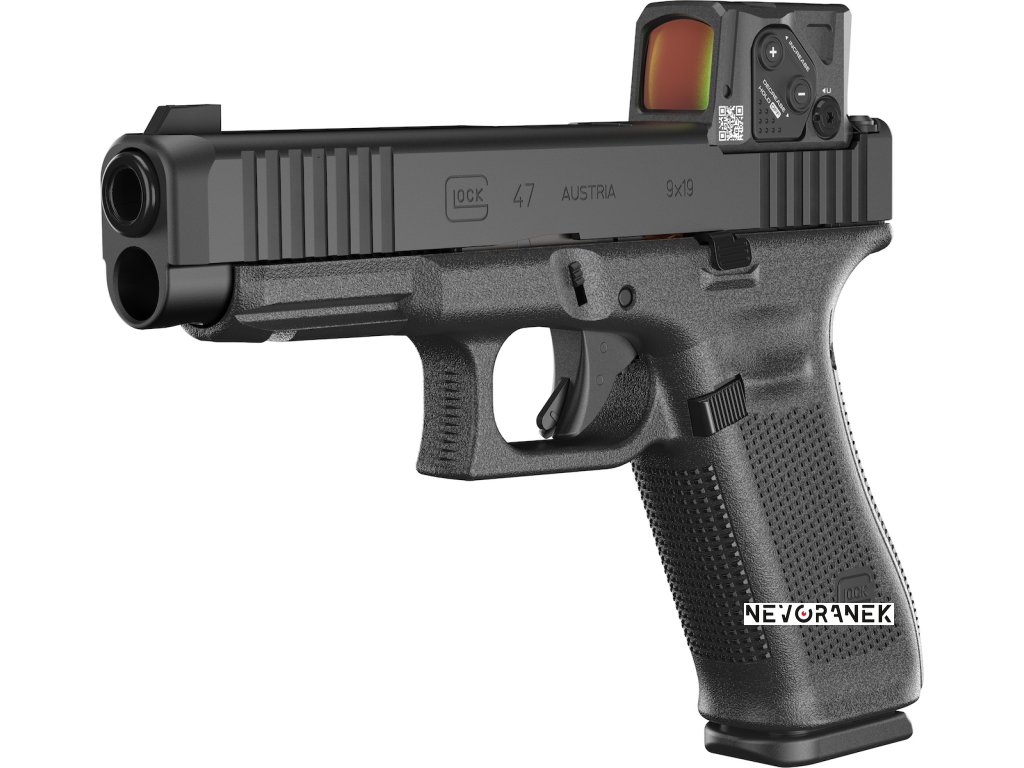 Glock 47 A-CUT je pistole velikosti STANDARD v ráži 9 mm Luger v konfiguraci s kolimátorem Aimpoint COA, se závěrem s modulárním optickým systémem konstruovaným pro kolimátor Aimpoint COA.
