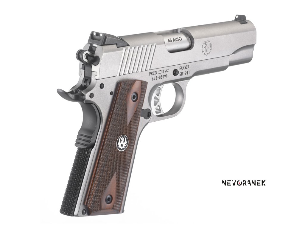 Ruger SR1911 v sobě kombinuje pistoli klasického designu s veškerými výhodami moderního způsobu výroby, který očekáváte od značky Ruger. Povrchová úprava je matný nerez a je vybavena 3-bodovými mířidly Novak. Přesná, drsná a spolehlivá SR1911 je 100%americkou záležitostí. Nadšenci těšte se, konkurence nechť se má na pozoru!