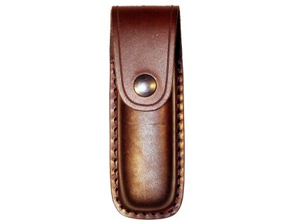 Kožené pouzdro určené na zavírací nůž se třemi želízky 111mm v hnědé barvě (nůž+pilka+párák).