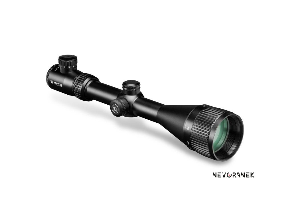 Zvětšení (magnification) 3-12x Průměr objektivu (objective diameter) 56 mm Vzdálenost výstupní pupily (eye relief) 89 mm Zorné pole (v 100 m) 12,22 až 3,06 m Fokální rovina druhá (velikost kříže se nemění) Přísvit ANO (baterie CR2032) Průměr tubusu (tube diameter) 30 mm Typ komínků standardní Zero Stop NE Velikost kliku 1/4 MOA Jedno otočení komínku 15 MOA Rozsah výškové korekce (elevation) 60 MOA Rozsah stranové korekce (windage) 60 MOA Paralaxa Stavitelná na objektivu od cca 9 m Délka 36,32 cm Hmotnost 598 g