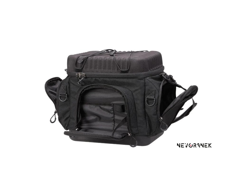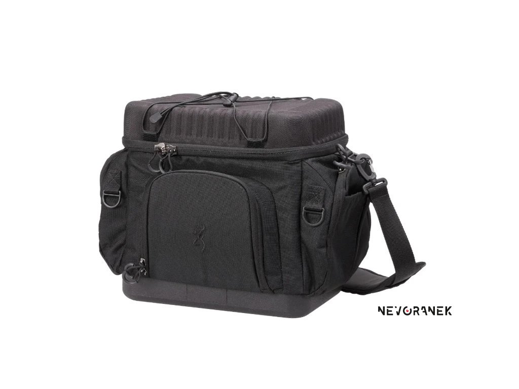 Střelecká taška pevné konstrukce s kapsami umožňuje přehledné rozložení nábojů a střeleckých pomůcek. Čtyři vnější kapsy, vnější plastové dno, zpevněný horní díl tašky.